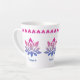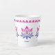 This mug has three blue-pink coloured lotus flowers with editable text to promote a calm meditative drinks break. The three items of text for you to edit are: "THANKFUL" "HAPPY" and "JOYFUL". Around the top is a pattern echoing the bright pink petal of the lotus flower below. It is a special birthday gift for a friend who loves yoga or pilates or spirituality. Or you could simply treat yourself. Namaste!