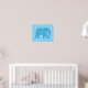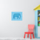 Mixed media digital graphic of an elephant against an arabesque tiled background - turquoise, dark indigo blue and white lotus flower pattern against an aqua background
