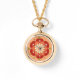 Japanese mandala design wraparound watch that depicts a stylised lotus flower, symbolising purity, spiritual awakening and faithfulness - flower in deep mandarin orange, medium orange and cream on a soft pastel orange background