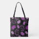 Modern lotus flowers pattern in purple colour with glitter effect tote bag .Unique, original floral design on black background.This design comes in different colour combinations and is available on many products in the store.