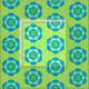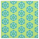 Japanese mandala print fabric that depicts a stylised lotus flower, symbolising purity, spiritual awakening and faithfulness - flower in soft sky blue, light aqua and jade green on a lime green background