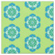 Lotus Flower Print, Lime Green and Light Blue Fabric