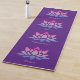 This yoga mat has a blue-pink coloured lotus flower in co-ordinating designs front and back. On the front there are four large flowers each with a separately editable caption. Or you can use the BREATHE RELAX TRANQUILITY PEACE shown. (Edit this text for your own preferred wording). On the back, the lotus flowers create a smart tiled pattern. The yoga mat has the same deep purple background colour on the front and the back.