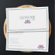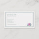 A business card design featuring a lotus flower in soft watercolor hues of pink and lavender, suggesting relaxation and tranquility. A thin border of a darker teal frames the card, providing a polished and professional finish.