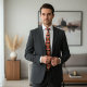 Trendy necktie showcasing a unique red, black, and green design, a must-have accessory for any stylish wardrobe.
