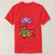 I give wanted to give this a 4 instead of a 5 because these Basic DARK T0shirts run unexpectedly SLIM or Narrow. Which is great if you do not have a potbelly, but I have a paunch. It isn't the shirt's fault that I've got a beer belly. The design and shirt itself is a quality cotton shirt. The color is more of a deep purple, but still a very pretty color. The Basic DARK T-shirts run a bit SLIMMER than the Basic Ts. The neck is a fraction narrower (or seems to be narrower) also. I'm a paunchy middle-aged woman and my neck is 12 inches (31cm) thick and the neckline fell about the same as in the photo of the man, and I had the desire to tug it a bit. So if you're a thick necked man or like loose shirts, be aware these are slimmer shirts. Once I get rid of my lockdown paunch it'll look great. The shirt washed well in cold water with no apparent bleeding. We don't have a dryer, so it hung dry. Did not shrink. Love the colors and the design. The design looks smaller on my shirt than it does on the model on-line. But still, it looks good on the shirt. The printing looks as it does on the model, just the size seems fractionally smaller. Washed garment in cold water, hung dry and design appeared unaffected.