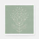 White lotus flower floral botanical line drawing on a lemongrass green background. A calming tableware design for your next meditation party or yoga get together.