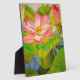 with original art design from watercolour painting by Sacha Grossel of serene water lily and lotus landscape with pink and white waterlily flowers and tropical green lilypads sitting in a cool, blue pond. This detailed, bright colourful and beautiful design is inspired by tropical themes for botanical flower lovers everywhere