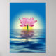 Pink lotus reflected in water with a meditating person's shadow. Religious allegory. Conceptual illustration.