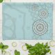 This concentric circle design features layers of white, turquoise and brown patterns inspired by Celtic weaves and Indian mehndi, such as vines, ribbons, and lotus flowers.