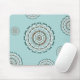 This concentric circle mandala features layers of white, turquoise and brown patterns inspired by Celtic weaves and Indian henna, such as vines, ribbons, and lotus flowers.