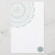 This concentric circle mandala features layers of white, turquoise and brown patterns inspired by Celtic weaves and Indian henna, such as vines, ribbons, and lotus flowers.