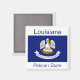 An authentic fine quality image of the flag of Louisiana set between the state name and nickname over a flag-colour background.