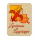 Perfect addition to your shop or home. In bright oranges, reds, and yellows with a crawfish backdropped by the state of Louisiana. Can be ordered in bulk for reduced prices.