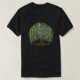 I give wanted to give this a 4 instead of a 5 because these Basic DARK T0shirts run unexpectedly SLIM or Narrow. Which is great if you do not have a potbelly, but I have a paunch. It isn't the shirt's fault that I've got a beer belly. The design and shirt itself is a quality cotton shirt. The color is more of a deep purple, but still a very pretty color. The Basic DARK T-shirts run a bit SLIMMER than the Basic Ts. The neck is a fraction narrower (or seems to be narrower) also. I'm a paunchy middle-aged woman and my neck is 12 inches (31cm) thick and the neckline fell about the same as in the photo of the man, and I had the desire to tug it a bit. So if you're a thick necked man or like loose shirts, be aware these are slimmer shirts. Once I get rid of my lockdown paunch it'll look great. The shirt washed well in cold water with no apparent bleeding. We don't have a dryer, so it hung dry. Did not shrink. Love the colors and the design. The design looks smaller on my shirt than it does on the model on-line. But still, it looks good on the shirt. The printing looks as it does on the model, just the size seems fractionally smaller. Washed garment in cold water, hung dry and design appeared unaffected.