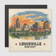 Bring the vibrant energy of Louisville, Kentucky, into your space with this stunning retro travel poster. Showcasing the city's iconic skyline under a dramatic sunset sky, this illustration features detailed architecture, a scenic bridge, and reflections on the Ohio River. Designed in a vintage postcard style with warm tones and classic lettering, it's perfect for adding charm to any home, office, or gallery wall. An ideal gift for Louisville natives, visitors, or lovers of American cityscape art.