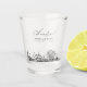 Modern Louisville skyline shot glass favour gift with "cheers" script. The design showcases a stunning sketch with the ability to customise your names and exact location. Enter the Zazzle design tool for additional customisations.