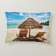 Lounge chairs on beach throw pillow