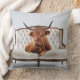 Lounging Highland Cow on White Vintage Sofa Cushion