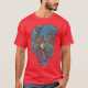 I give wanted to give this a 4 instead of a 5 because these Basic DARK T0shirts run unexpectedly SLIM or Narrow. Which is great if you do not have a potbelly, but I have a paunch. It isn't the shirt's fault that I've got a beer belly. The design and shirt itself is a quality cotton shirt. The color is more of a deep purple, but still a very pretty color. The Basic DARK T-shirts run a bit SLIMMER than the Basic Ts. The neck is a fraction narrower (or seems to be narrower) also. I'm a paunchy middle-aged woman and my neck is 12 inches (31cm) thick and the neckline fell about the same as in the photo of the man, and I had the desire to tug it a bit. So if you're a thick necked man or like loose shirts, be aware these are slimmer shirts. Once I get rid of my lockdown paunch it'll look great. The shirt washed well in cold water with no apparent bleeding. We don't have a dryer, so it hung dry. Did not shrink. Love the colors and the design. The design looks smaller on my shirt than it does on the model on-line. But still, it looks good on the shirt. The printing looks as it does on the model, just the size seems fractionally smaller. Washed garment in cold water, hung dry and design appeared unaffected.