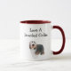 Trendy love a Bearded Collie coffee mug design with image of a Bearded Collie dog breed and stylish two tone coffee cup design that adds a touch of style. Designed as a coffee mug for the office or home.
