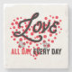 Add a touch of love to every moment with our "Love All Day, Every Day" coasters. Designed to bring warmth and positivity to your space, these coasters are perfect for spreading love and joy with every drink. Crafted with care and style, they make a great addition to any home or a thoughtful gift for loved ones.
