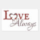 This sticker design features the text "Love Always" with the "o" in Love as a Red Tulip Heart Wreath. -