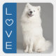 Aww...who can resist the sweet face of an Eskie puppy? These fun greeting stickers feature a portrait of a happy white American Eskimo Puppy dog highlighted against a blue grey background. She is ready to help you send Love to your friends and family.