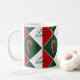 The diamond pattern of candy canes and the word love in cursive is done in red, green, and white colours.