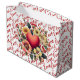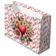 A Large Valentines Day Gift Bag With Typography Script Pattern With Heart And Flower Center
