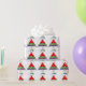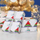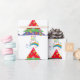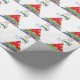 Christmas tree with three layers - purple, green and red. Above is a rainbow. On the tree itself are peace signs, butterflies, and hearts. At the base of the tree is "Love and peace forever"