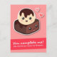 Cute food cartoon of a scoop of vanilla ice cream on top of chocolate brownie with two hearts and fudge - a perfect and complete dessert. Text reads "You complete me! Like Vanilla Ice Cream for Brownie." For that special and sweet someone who makes an ideal pair with you!
