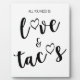 Love and Tacos wedding sign -Design is based on black and white scripture and. In case you have additional need be free to contact me: szdesigns2021@gmail.com