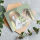 Simple minimalist 2 photos sage green wedding thank you card with elegant love and thanks calligraphy script and your custom text template.