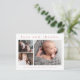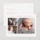 A sweet 3 photo collage birth announcement and thank you note card featuring a simple modern type and 3 pictures on the front. The back is a mailable postcard with a large full name header and personal message from the family. Click the edit button to customise this design with your photos and details.
