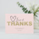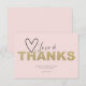 Say thank you to friends and family with this simple minimalist heart themed thank you card. The design features the words Love and Thanks in a trendy hand lettered script typography in a bold modern faux gold font over a pale pink background. The card reverses to a stylish pale pink colour. To see the matching stationery suite visit www.zazzle.com/dotellabelle.