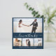 "Love and Thanks" Hand Lettered Script Heart Elegant, Minimalist Wedding Photo Collage Thank You Card in navy blue. Simple cute wedding card template featuring four (4) photo on the front and one photo on the back side. With the text "Love and thanks" in a pretty hand lettered swash tail typography script font. Add your name and thank you message.