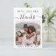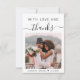 Elegant wedding thank you card featuring your wedding photo, "With Love and Thanks" in a mix of simple modern typography and a chic script with swashes and your first names and wedding date joined by a heart. On the back, personalise your thank you message and add your names in a signature-like script.