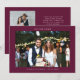 Simple and minimalistic wedding thank you card featuring your wedding photo with a white frame with texts around that says "Love and Thanks" and the couple's names and the wedding date. There is a pre-printed message on the back of the card that's editable and another picture can be added as well. This 2-sided thank you card is so timelessly stylish. The background is cranberry.