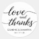 Personalise these elegant and stylish "love and thanks" stickers for your wedding. Use them on gift bags, cards, favour boxes and other giveaways.