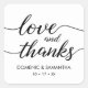 Personalise these elegant and stylish "love and thanks" stickers for your wedding. Use them on gift bags, cards, favour boxes and other giveaways.