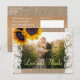 Sunflowers bouquet on beige faux burlap and white lace photo thank you wedding postcard. +++++++++ Personalise with your text and custom photo! ++++++++++ Suitable for floral summer or autumn fall / garden backyard rustic country themed weddings.