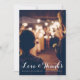 This wedding photo thank you card features a large photo from your wedding with "Love and Thanks" in white cursive text and your own message on the back.