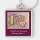 Watercolor painting of the golden yellow word "Love" with a double heart. Pink and purple highlights the letters and heart. A light splash of glitter across the top gives the painting a sparkly glow. The inspirational word painting series are taken from the text used in the angel paintings. "I choose to know love" -My Life, My Choice "In my life I choose to know my love" -Feel Beauty "It cannot cripple love" -What Cancer Cannot Do These images are designed so as to provide reflection and meditation on a single word. You can also combine them together to make your own word series for meditation/ contemplation. Personalise this keychain with your own text or images using the "Customise" button.