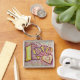 Watercolor painting of the golden yellow word "Love" with a double heart. Pink and purple highlights the letters and heart. A light splash of glitter across the top gives the painting a sparkly glow. The inspirational word painting series are taken from the text used in the angel paintings. "I choose to know love" -My Life, My Choice "In my life I choose to know my love" -Feel Beauty "It cannot cripple love" -What Cancer Cannot Do These images are designed so as to provide reflection and meditation on a single word. You can also combine them together to make your own word series for meditation/ contemplation. Personalise this keychain with your own text or images using the "Customise" button.