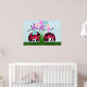 Two ladybugs find each other between a bunch of colourful flowers. It's love at first sight for these two love bugs. Green grass beneath them, flowers are of purple, pink, and blue with green stems. Blue airbrushed skies. Made from digital crayon, and airbrushed.