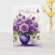 A watercolor painting of a bouquet of purple roses in a matching vase. The painting is set against a soft, light background, which gives the flowers a sense of depth and dimension. The painting is a beautiful and romantic depiction of love and beauty. The text "Do you believe in love at first sight?" is written in cursive script. A purple butterfly is flying above the text and another is in the bouquet of roses. The painting has a soft, romantic feel and is perfect to say I love you, perhaps even for the first time.
