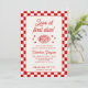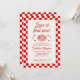 Celebrate your Love at First Slice with this chic Italian-inspired bridal shower invitation. Blending playful pizza puns with a retro red and white checkered design, it's perfect for a stylish pizza party.