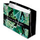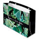 Large black glossy gift bag with an image, on the front and back, of silhouettes of volleyball players, volleyball nets and volleyballs on an artistic blue, green and yellow background. Optional black ribbon has the customisable phrase “Love at First Spike.” See the entire Father’s Day Gift Bag collection in the PARTY FAVORS section.