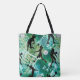 Large all-over-print brushed polyester tote bag with an image, on both sides, of silhouettes of volleyball players, volleyball nets and volleyballs on an artistic blue, green and yellow background. See the entire Father’s Day Tote Bag collection in the PARTY FAVORS section.
